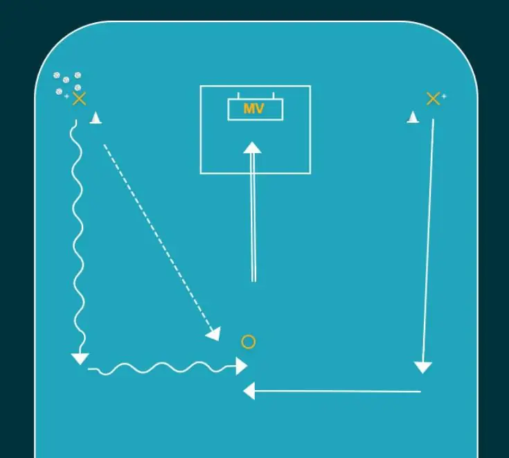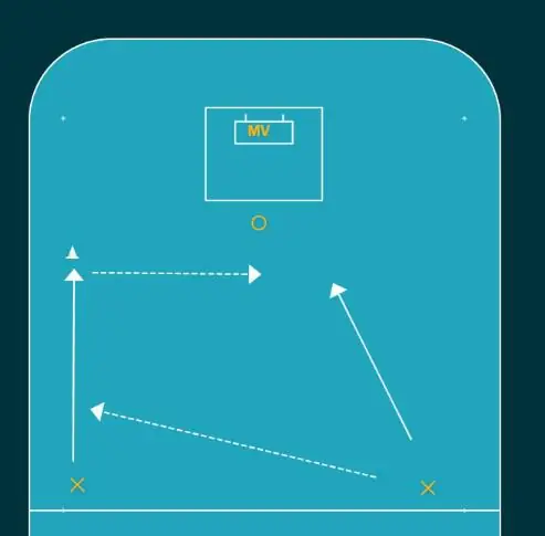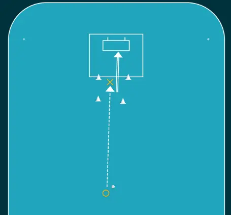 Spelare börjar från nedre hörn, slår en passning tvärs över till andra ledet för att sedan springa ner längs egen långsida.