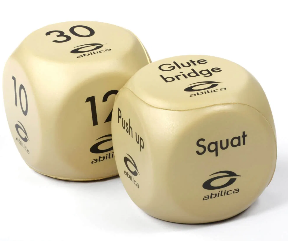 En tärning med övningar (t.ex. squats, armhävningar, hopp)
