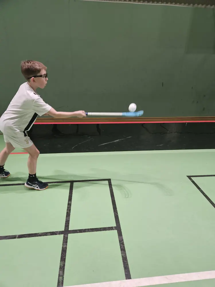 Kicka bollen med klubban är en innebandyövning som tränar bollkontroll, känsla och koordination. Variera med backhand, skaftkickar eller kreativa mönster i luften. Kicka bollen med klubban