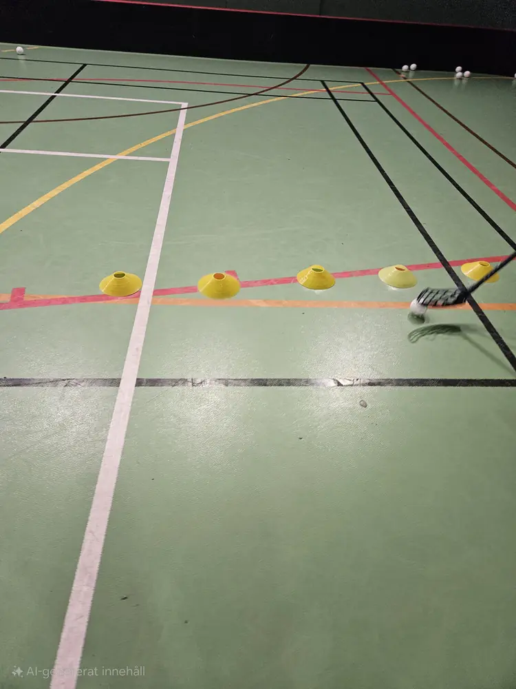 Tillskillnad från den vanliga snurren så tar man i den här innebandyövningen ut snurren runt konerna.
