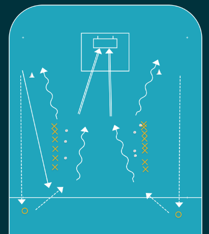 Övningen är intensiv, matchlik och passar bra både som huvudövning eller som tävlingsmoment/stafett.
