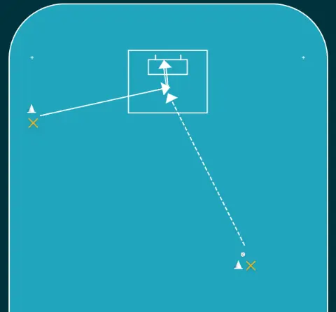 2 anfallare mot 1 back, men med start från samma hörn.