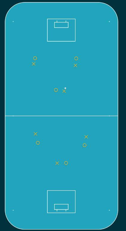 “Uppdelat lag” är en fartfylld och lärorik övning där spelarna tränar anfall och försvar separat, men ändå spelar i lag mot varandra. Övningen passar för de flesta åldrar men är särskilt effektiv från yngre ungdom och uppåt, när spelarna börjar förstå rollerna i anfall och försvar.